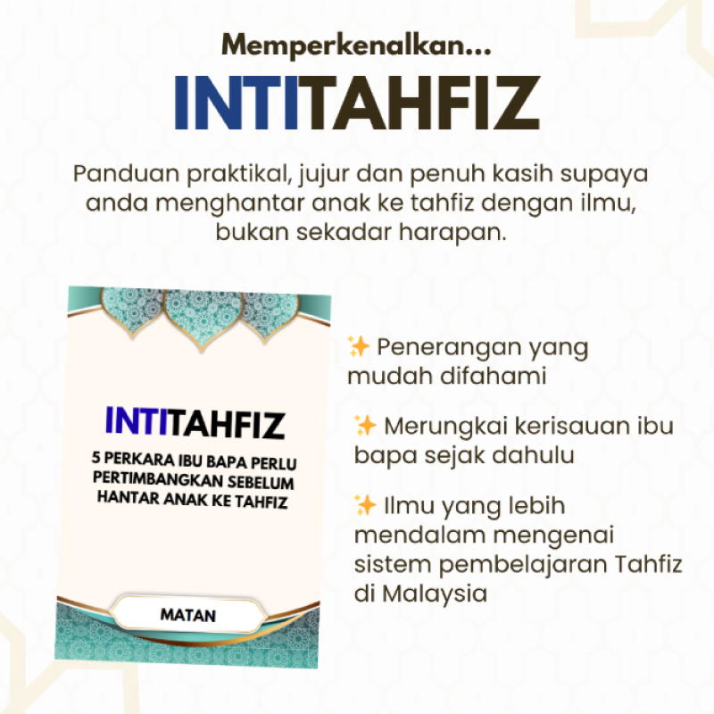 - Faham apa yang perlu disediakan sebelum, semasa & selepas anak masuk tahfiz.